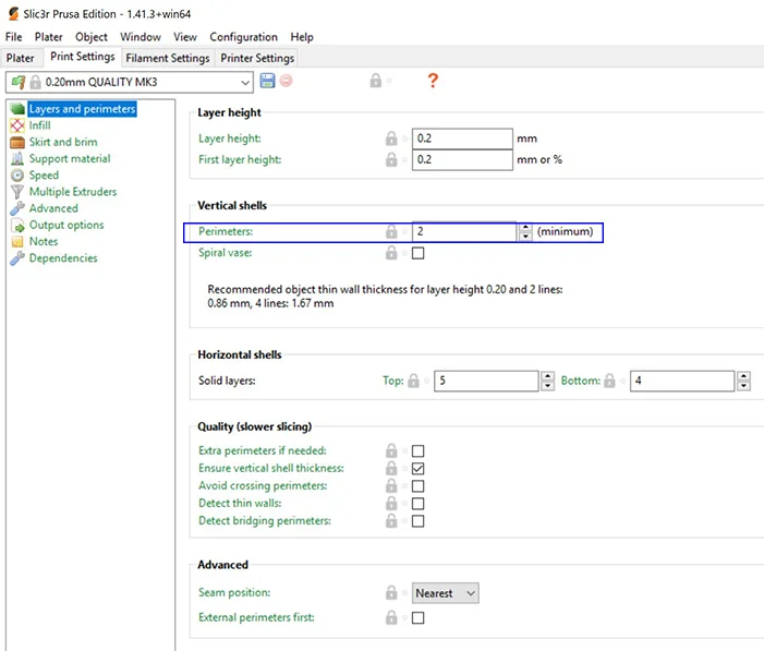 Slic3r infill outline perimeter parameters