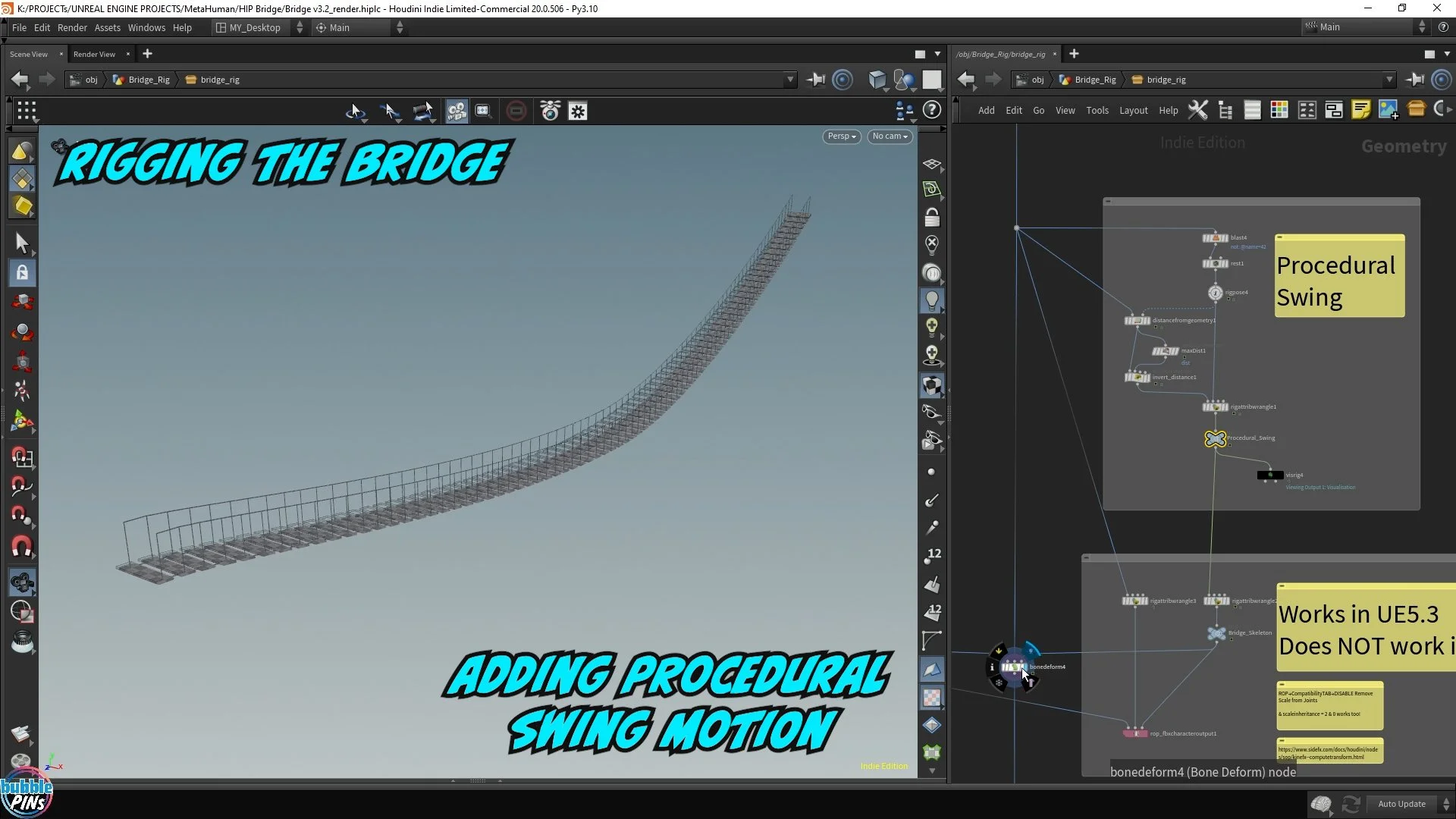 Swinging Bridge 3D model made in Houdini & Rigged & Animated with KineFX & Exported into UE5