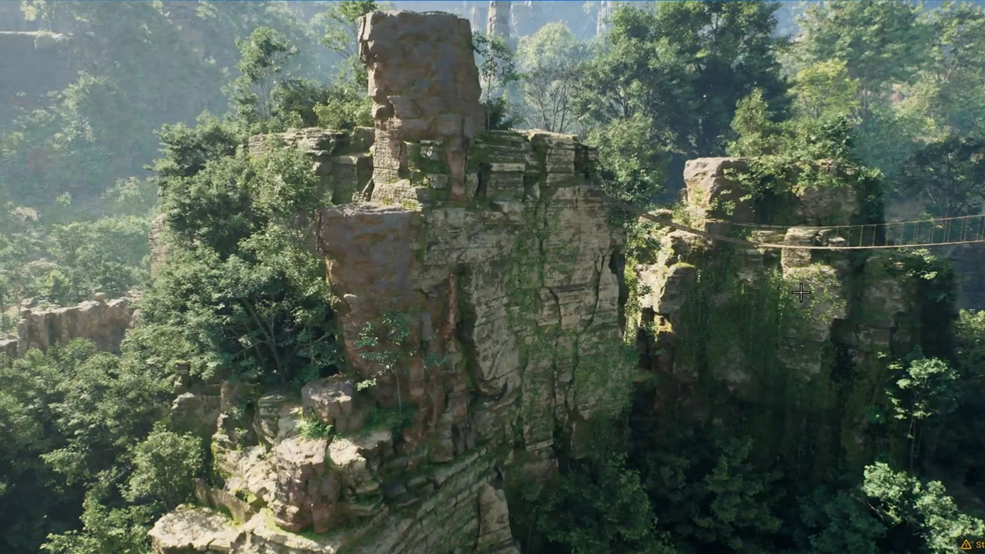 The swinging bridge is also created in Houdini from scratch. It was procedurally modeled and even rigged with animation in Houdini and then exported into Unreal Engine 5.