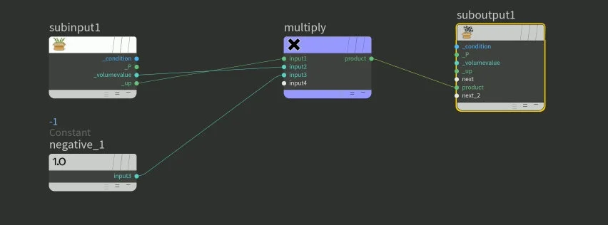 We need the distance value for sure, but the negative value isn’t helping us calculate the footprint or how deep the footprint is pressing onto the ground plane. So, by multiplying -1 to the _volumevalue, which is the SDF volume value it becomes positive.