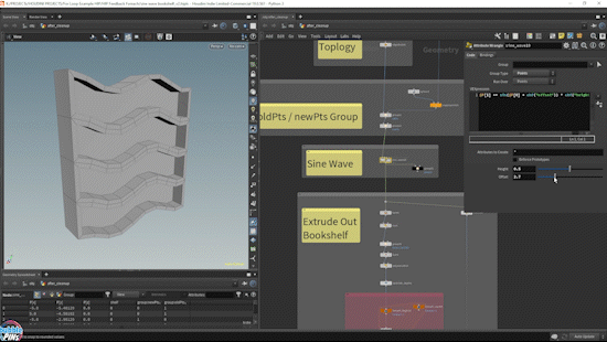 Clips from Sine Wave Bookshelf in Houdini Tutorial